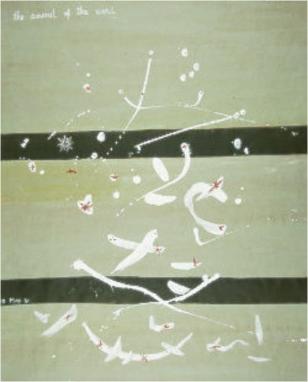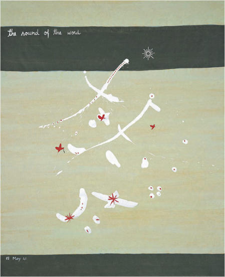 The artist's interest in the letters of the alphabet leads to their combination into syllables and words, which are the units of the phonemic chain that makes the sentence. But she goes beyond that. She captures the physical being of the word and treats it with the attention and the care one dispenses to a fragile creature.In the pictures gathered under the title The Sound of the Word, she reveals, in the delicate touch and soft tone of colour, a deep sense of responsibility for the usage of language. Its importance as the most generalised form of communication, exposed to violent feelings and ideological manipulations, is crucial for the mental and physical well being of the individual and the community. By implication the pain that afflicts human beings and the social ills that affect society are excluded from the semantic fields explored by the artist, but never forgotten or ignored in her concern for human life.