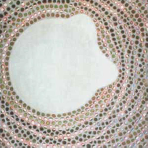 The third person pronoun It appears as the merger of the female and the male - the annulation of duality as such. But there is now another change of direction. The centre as a circle, takes an embryonic shape, moving into the realm of biological formations. They develop their composition until they reach the shape that represents the Lotus flower - symbol of the initiation into the mysteries of life.
